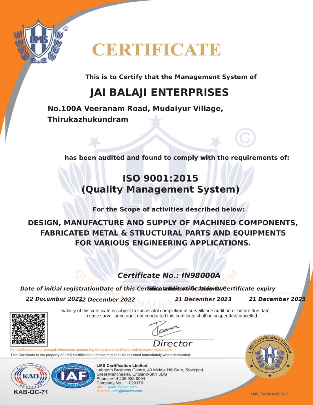 Jai Balaji Fabricators is one of Chennai's leading and fast-growing Steel Fabrication Company that provides Engineering solutions to various industries.