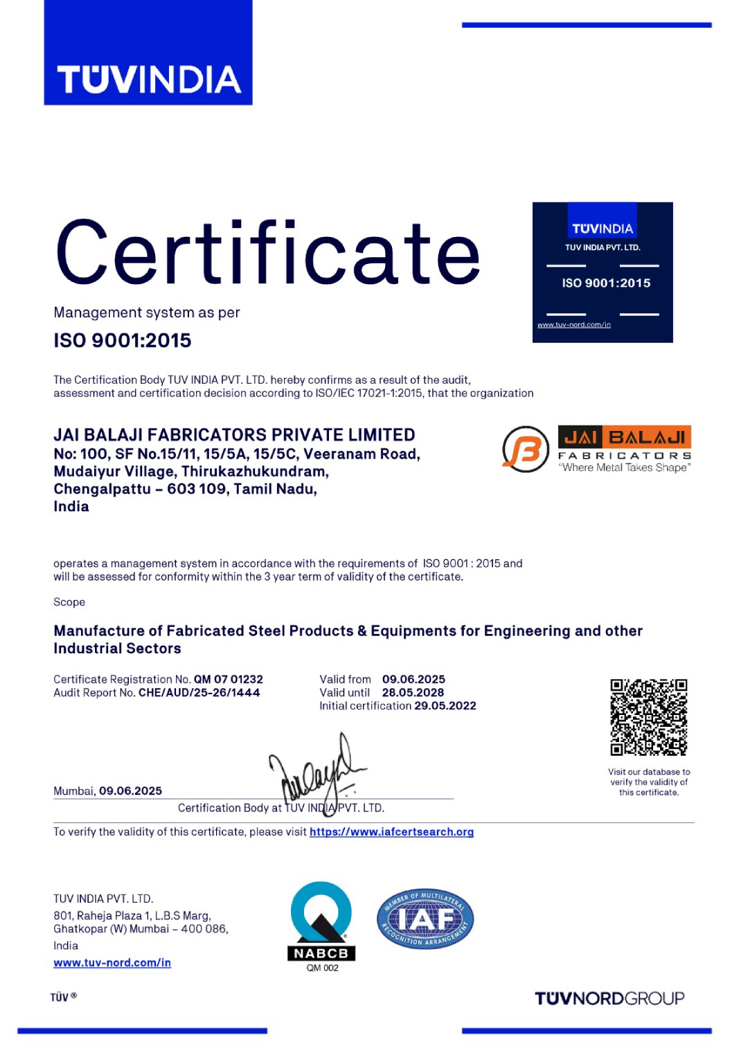 Jai Balaji Fabricators is one of Chennai's leading and fast-growing Steel Fabrication Company that provides Engineering solutions to various industries.